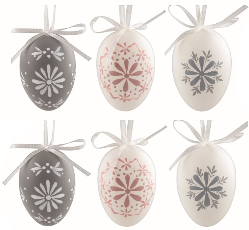 - Vajíčka svým květinovým dekorem připomínají tradiční kraslice. V sáčku naleznete 6 kusů plastových velikonočních vajíček ve 3 barevných variantách.