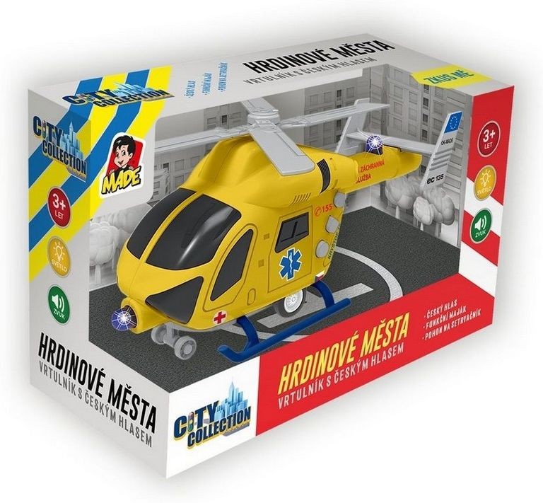 - Vrtulník je na setrvačník a obsahuje světelné a zvukové doplňky.