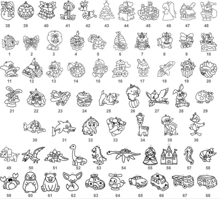 Tato plastová závěsná sklíčka o velikosti cca 8 cm s černou vyvýšenou konturou jsou ideální pro kreativní tvoření. Každé sklíčko je navrženo tak, aby usnadnilo vybarvování a oddělilo jednotlivé části motivu. Můžete je ozdobit barvami na sklo, barevnými lepidly, glitry nebo jinými kreativními materiály. Po dokončení tvorby lze sklíčko snadno zavěsit pomocí provázku.