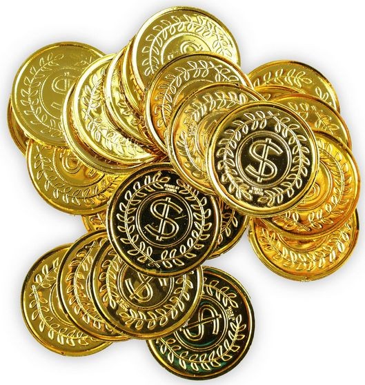 - Plastové peníze s pirátskými motivy (pirát + truhla s pokladem).