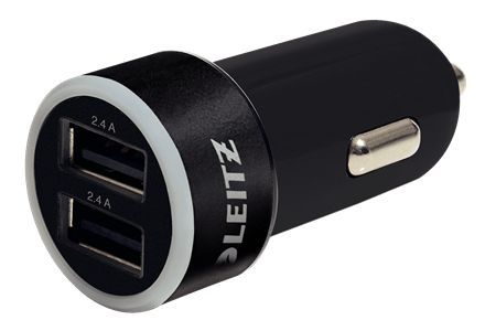 Dvojitá univerzální USB nabíječka do auta Leitz Complete, černá